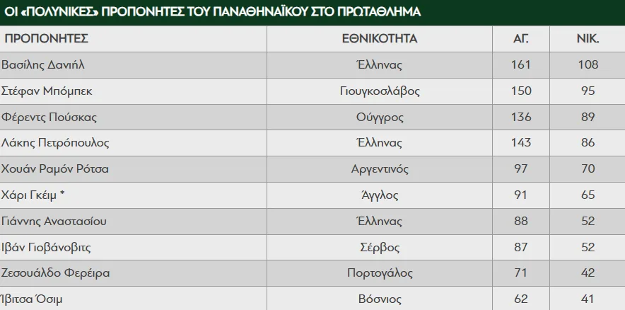 Δείτε στην παρακάτω φωτογραφία τους προπονητές του Παναθηναϊκού με τις περισσότερες νίκες στο πρωτάθλημα: