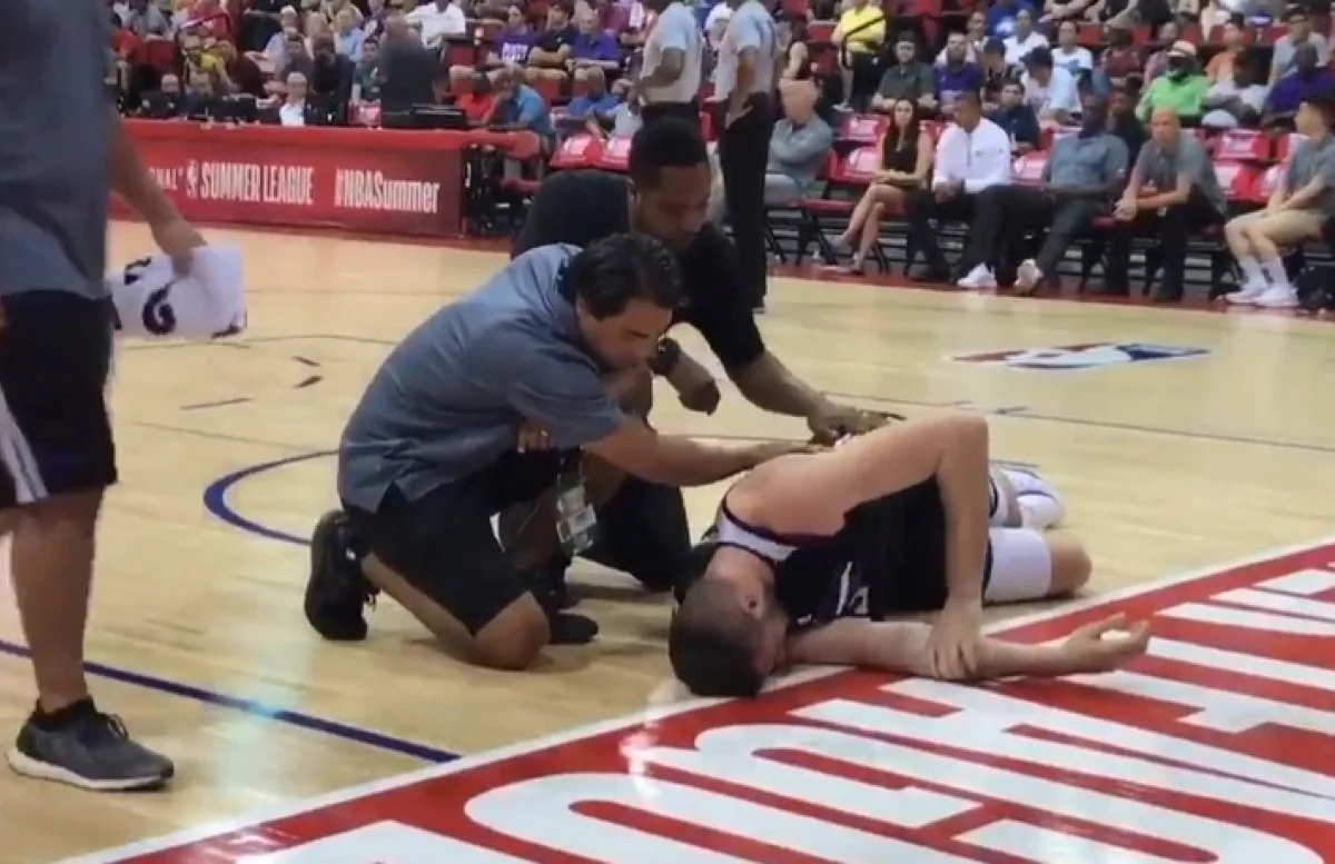 Στο Summer League του 2017, ο Έλληνας «δεινόσαυρος» είχε χτυπήσει στο αριστερό του πόδι με τους Κινγκς, στη νίκη των «βασιλιάδων» κόντρα στους Φοίνιξ Σανς στο Λας Βέγκας. Και τότε είχε χρειαστεί καροτσάκι για να αποχωρήσει από το γήπεδο, αφού δεν μπορούσε να βάλει καθόλου βάρος στο αριστερό του πόδι. Οι συμπαίκτες του, είχαν βοηθήσει τον «Big Papa» να βγει από τον αγωνιστικό χώρο, υποβασταζόμενος.
