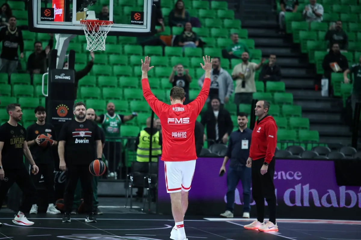 Οι «ερυθρόλευκοι» έφτασαν από αρκετά νωρίς στο γήπεδου του «αιωνίου» αντιπάλου, κόντρα στον οποίο «τρέχουν» ένα εντυπωσιακό 9-0 στην Ευρώπη. Και ο Σάσα Βεζένκοφ, όπως συνηθίζει, βγήκε αρκετή ώρα πριν το πρώτο τζάμπολ στο παρκέ για το καθιερωμένο ζέσταμα.