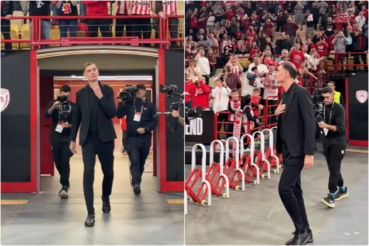 Χαμός με τον Γιώργο Μπαρτζώκα στο Στάδιο Ειρήνης και Φιλίας με τον κόσμο του Ολυμπιακού να περιμένει πως και πως την είσοδο του Γιώργου Μπαρτζώκα στο παρκέ για να τον αποθεώσει.