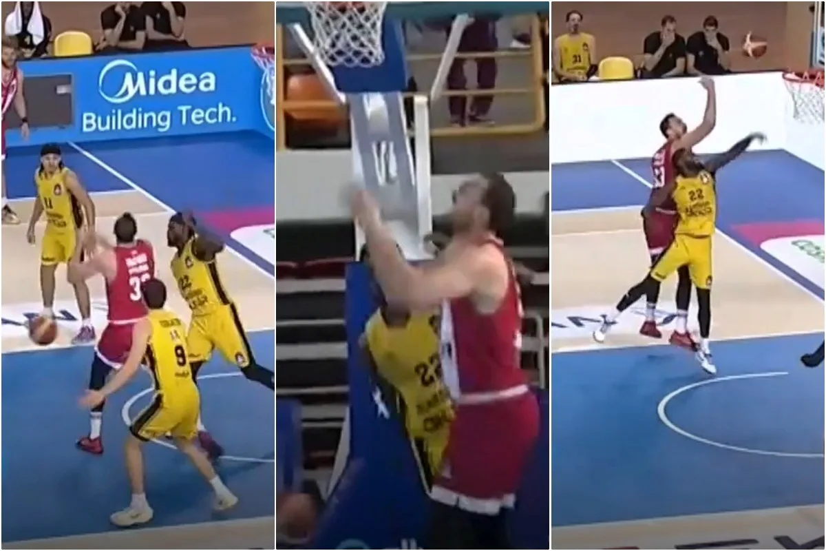 Περίπου τρία λεπτά αργότερα και σε μία προσπάθειά του να πάρει επιθετικό ριμπάουντ μετά από άστοχο σουτ του Φουρνιέ, βρήκε την μπάλα με τα ακροδάχτυλα και αφού είχε κρυώσει κάπως το σημείο και ο αντίχειρα, κατάλαβε ότι δεν είχε συμβεί κάτι καλό. Ο «δεινόσαυρος» των Πειραιωτών ζήτησε αλλαγή και πήγε στον πάγκο για να του παρασχεθούν οι πρώτες βοήθειες.