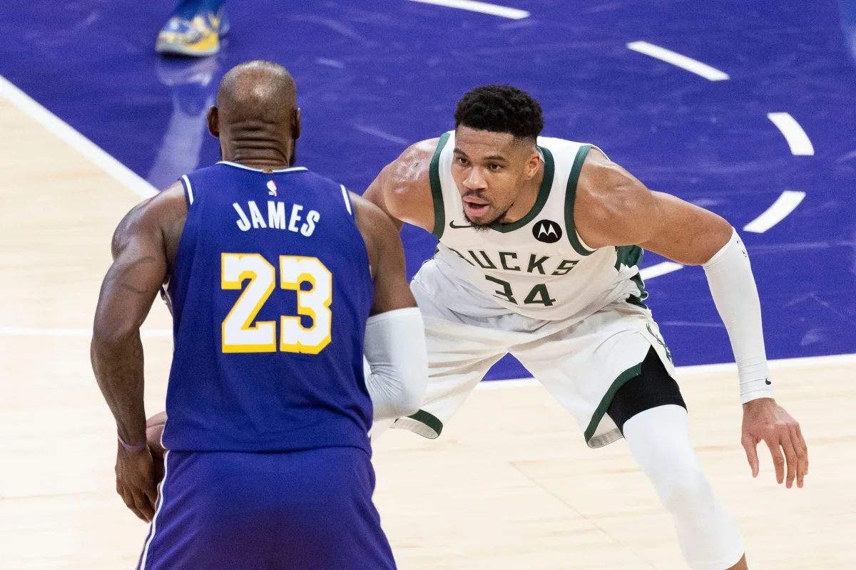 Στην απέναντι πλευρά, εκείνη των γηπεδούχων, βρισκόταν η αφρόκρεμα δύο εποχών. Οι κορυφαίοι των κορυφαίων. Στην μια πλευρά του νήματος των Λέικερς και του παγκόσμιου μπάσκετ ο ΛεΜπρόν Τζέιμς και στην άλλη ο Λούκα Ντόντσιτς. Αυτήν την κλωστή έκοψε στη μέση ο Γιάννης Αντετοκούνμπο.