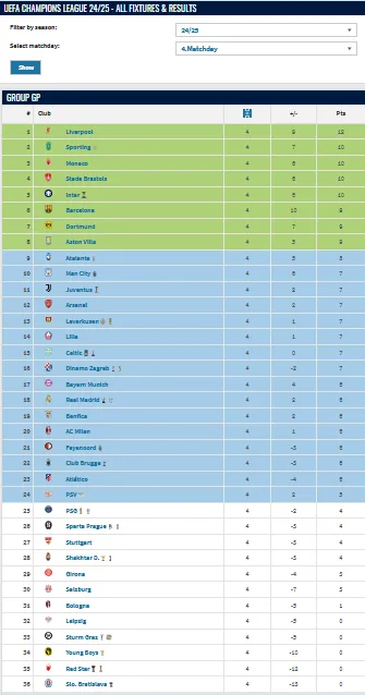 Σε αυτό το σημείο, ωστόσο, αξίζει να ρίξουμε μια ματιά σε όσα είχαν συμβεί πέρυσι, την αντίστοιχη περίοδο. Δηλαδή, μετά από τις πρώτες τέσσερις αγωνιστικές της League Phase του Champions League.
