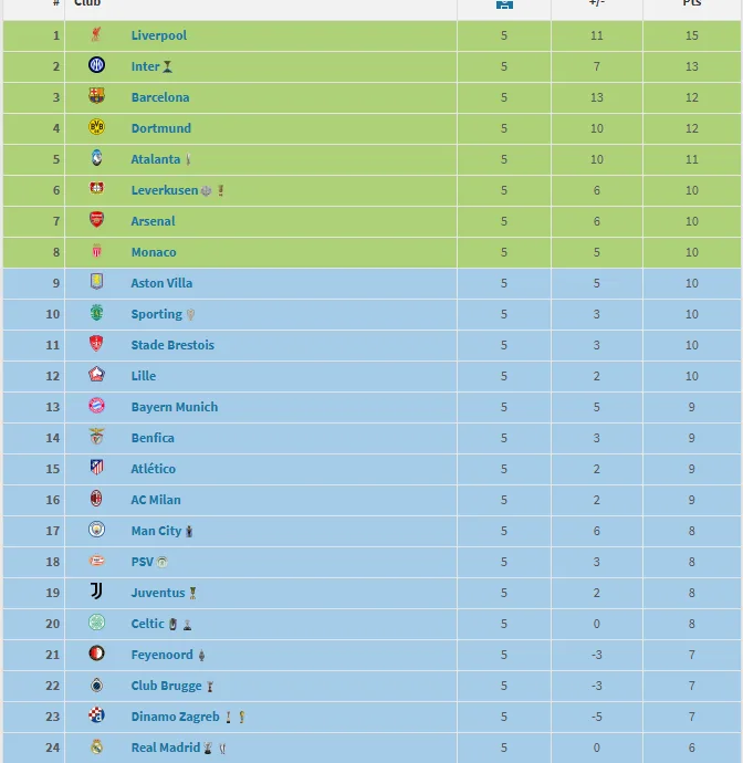 Δείτε τη βαθμολογία της 24άδας του περσινού Champions League, μετά από 4 ματς: