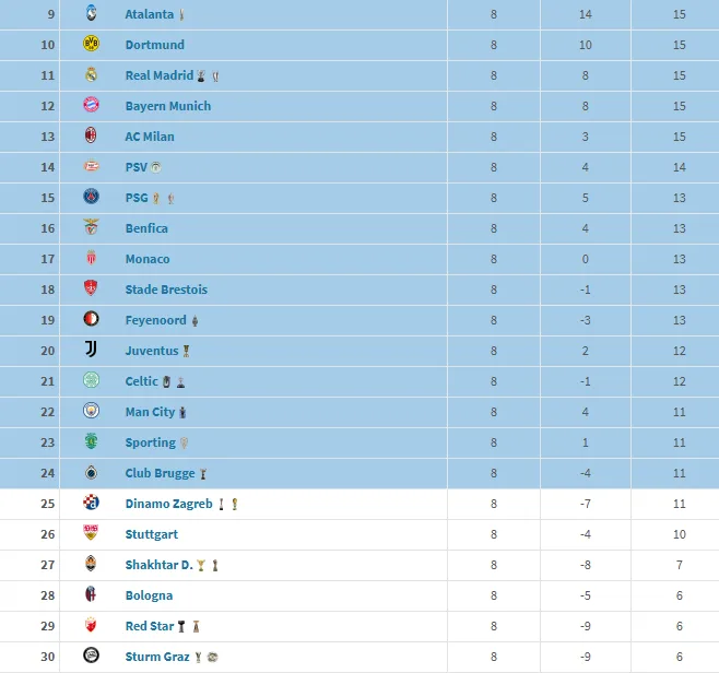 Αυτές ήταν η Κλαμπ Μπριζ, η Μάντσεστερ Σίτι και η Σπόρτινγκ Λισαβόνας. Ωστόσο, η Ντιναμό Ζάγκρεμπ, ακόμα και αν ήταν σε αυτό των αριθμών βαθμών ήταν εκτός 24άδας, μιας και «έχασε» στις ισοβαθμίες!