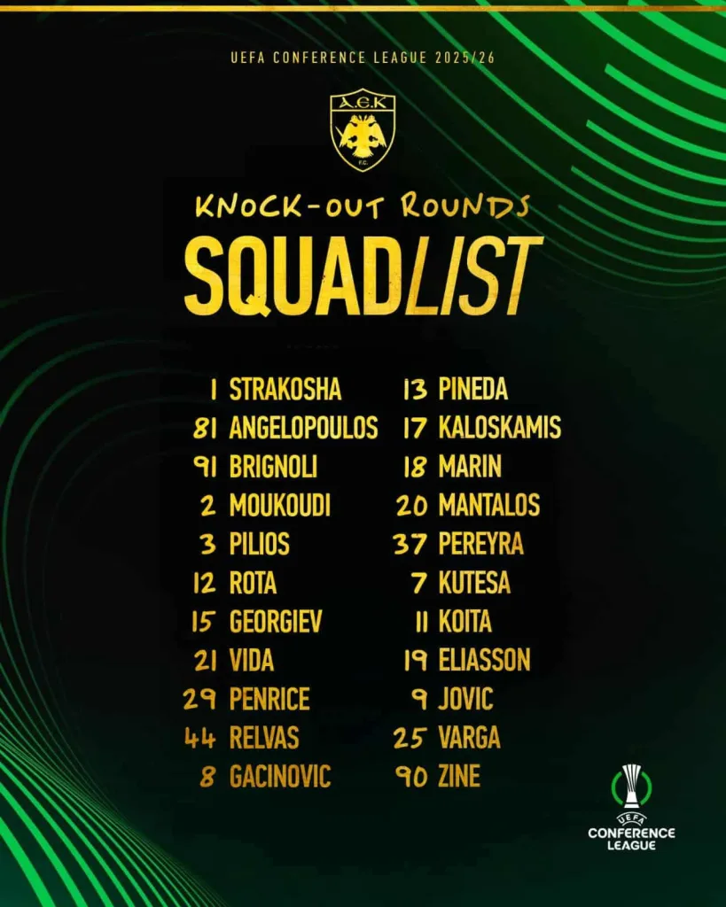 Λίγες ώρες πριν το φινάλε της διορίας, η ΑΕΚ έκανε γνωστή τη λίστα της για τη νοκ-άουτ φάση του Conference League!