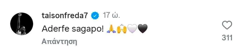 Ο Τάισον, λοιπόν, σχολίασε κάτω από τη συγκεκριμένη δημοσίευση: «Αδερφέ σαγαπώ»!