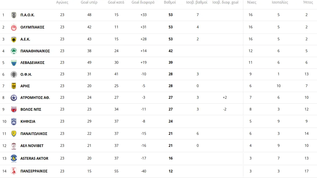 Κάπως έτσι, η ομάδα του Ραζβάν Λουτσέσκου έφτασε τους 53 βαθμούς και έπιασε στην κορυφή του βαθμολογικού πίνακα τον Ολυμπιακό και την ΑΕΚ, με τις τρεις ομάδες να ισοβαθμούν τρεις αγωνιστικές πριν το φινάλε της κανονικής περιόδου.