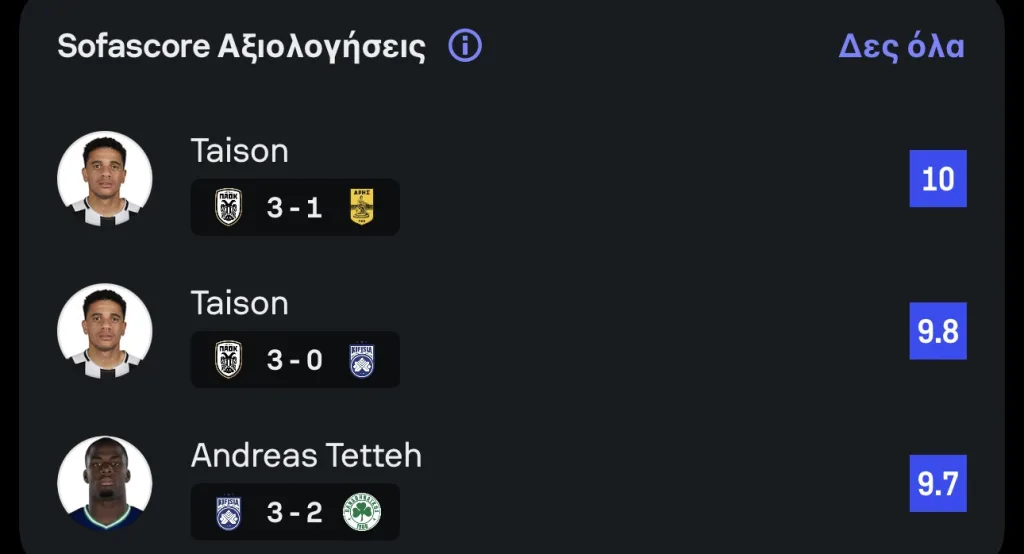 Τι ήταν αυτό, που τον έκανε να «ξεχωρίσει»; Η συνολική βαθμολογία που πήρε στο τέλος της αναμέτρησης! Σύμφωνα με το Sofascore, ο Τάισον έκανε το… τέλειο ματς, καθώς «έπιασε» καθαρό «10άρι»!