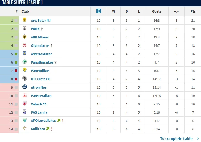Δείτε εδώ της βαθμολογία της περασμένης Stoiximan Super League, μετά από τις πρώτες 10 αγωνιστικές: