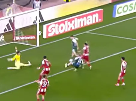 Ο Ολυμπιακός έψαχνε την ισοφάριση, έπειτα από το γκολ του Βισέντε Ταμπόρδα από πολύ νωρίς και στο 78ο λεπτό της αναμέτρησης, είχε την ευκαιρία να το πετύχει.
